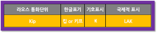 2023년 4월 10일 기준으로 라오스 킵과 우리나라 원화의 통화 비율을 보면 라오스 1킵은 원화로 약 0.077원이 된다. (1키프 = 원화 0.077원)